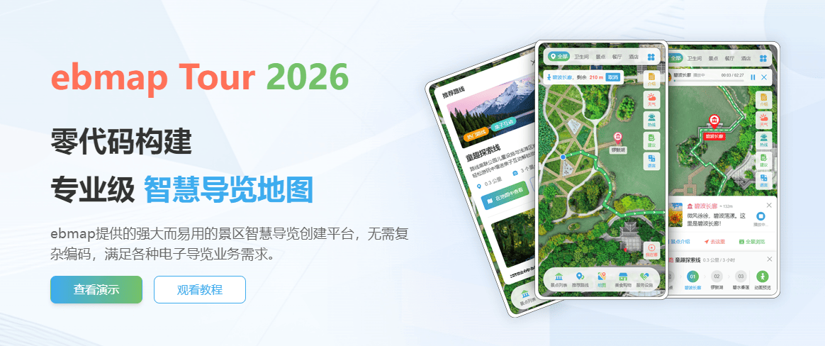 无论您是为景区打造智慧导览方案,还是为园区设计数字化导览体验,ebmap Tour 都能成为您值得信赖的技术伙伴,助您以更低的成本、更快的速度,赢得更多项目机会。